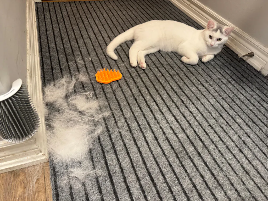 Depending on the age and temperament of your cat and what they're used to already, most cat's love it right away – but sometimes a picky cat may need some easing in. Because there's lots of benefits for using a comfortable and allergy-friendly silicone brush like the Bailey Brush, stick with it!